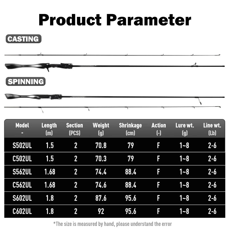 Fishing Rod 2 Section Spinning Casting 1.5/1.68/1.8m Travel Rod Baitcasting Ultralight Carbon Fiber Rod