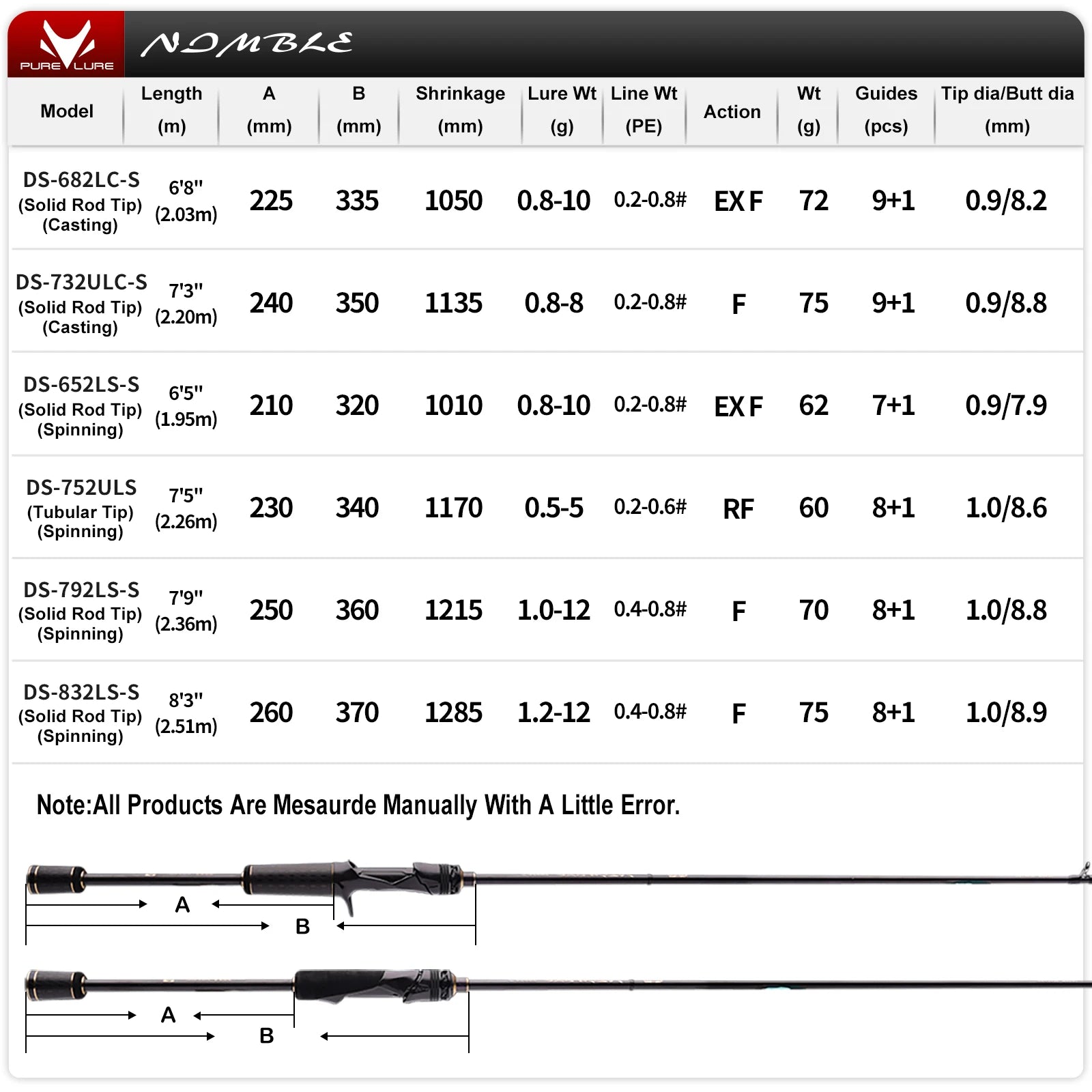 PURELURE NDMBLS Toray M46X 0.5-12g Soft Lure EXF Action FUJI Titanium Frame and SIC Ring Carbon Solid Tip Perch Bass Pike Zander